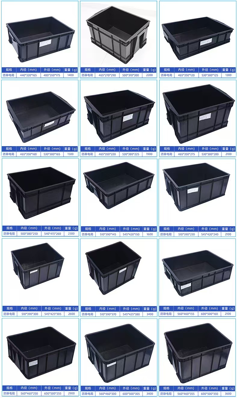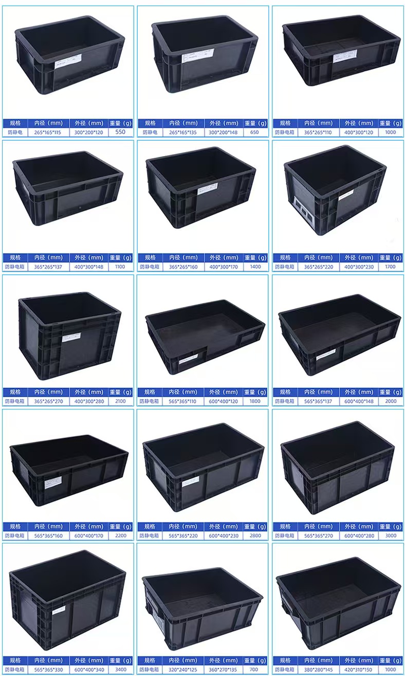 防靜電周轉箱也稱為防靜電膠箱(xiāng)、導電周轉箱(xiāng),廣泛用於機械、汽車(chē)、家電、輕工、電子等行業,能(néng)耐(nài)酸耐堿、耐油汙,無毒(dú)無味,可用於盛(shèng)放電子工業元件,清潔方便,零件周轉便捷、堆放整齊,便於管理。